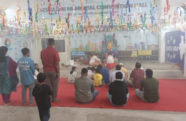 पूजा के बाद प्रतिभागि प्रसाद ग्रहण करते हुए|