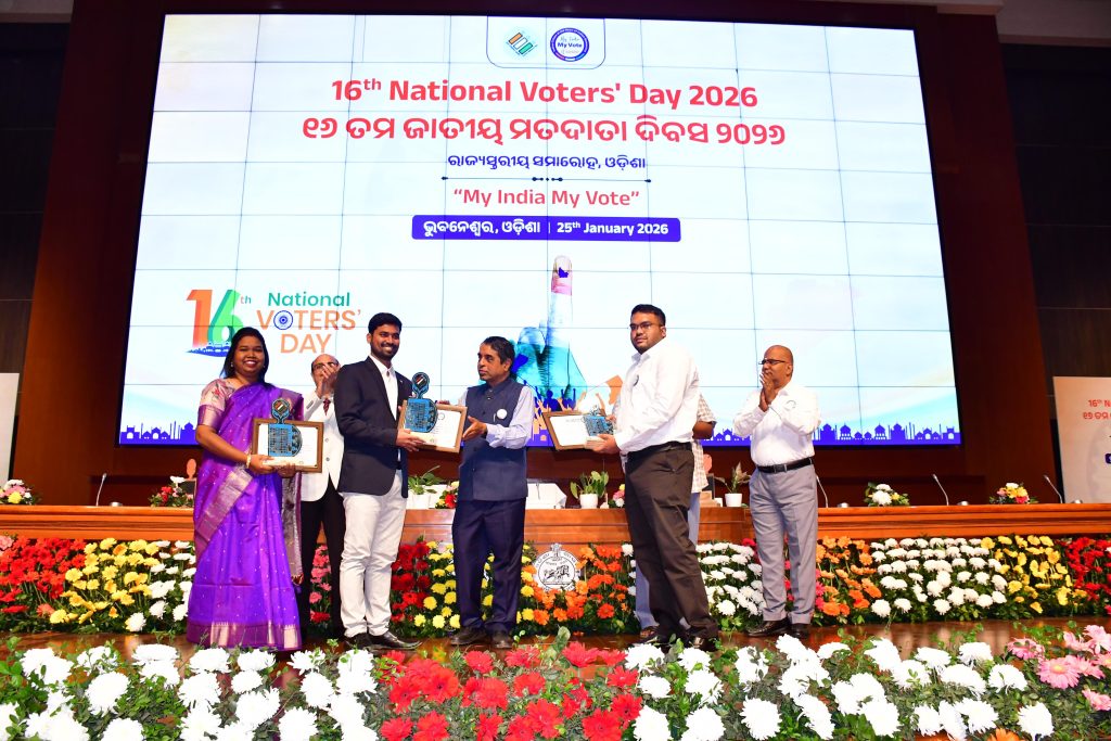 श्री विनय कुमार तिवारी, डीआईओ, एनआईसी नुआपाड़ा को 16वें राष्ट्रीय मतदाता दिवस, 2026 के अवसर पर 71–नुआपड़ा विधानसभा उप-चुनाव में उनकी उत्कृष्ट भूमिका के लिए “सर्वश्रेष्ठ निर्वाचन प्रबंधन” श्रेणी के अंतर्गत सम्मानित किया गया।